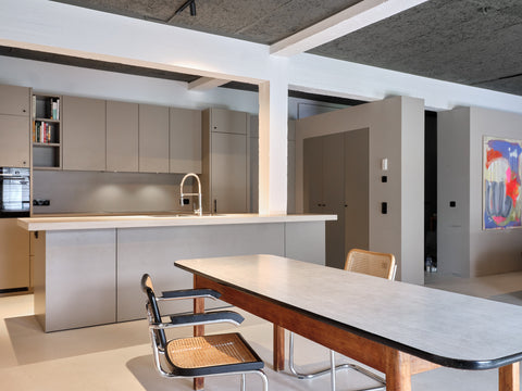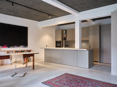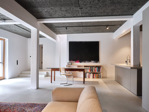 Gemeinsam mit unseren Kunden legten wir besonderen Wert darauf, die ursprüngliche Substanz und den Werkstattcharme des Gebäudes spürbar zu lassen. Viele Oberflächen blieben bewusst unverändert und erhielten lediglich einen schlichten Anstrich, der die alte Textur sichtbar lässt und reizvolle Kontraste zu den neuen Trockenbau- und Schreinereinbauten schafft.